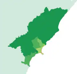 The Kaikōura District (/kˈkɔːrə/; Māori pronunciation: [kaiˈkoːuɾa]) is a territorial authority district in Canterbury Region on the South Island of New Zealand.[3] The district encompasses the eponymous town of Kaikōura, a number of small towns and settlements and the surrounding rural area in northern Canterbury. The district had an estimated population of 4,380 as of June 2024.[2]
