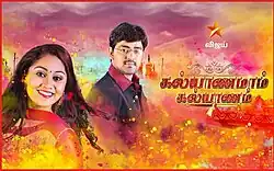 Kalyanamam Kalyanam (lit. Marriage Like Marriage) is a Tamil-language family soap opera initially started with Sreethu Krishnan and Tejas Gowda in the lead but later replaced by Pragya Nagra and Subramanian Gopalakrishnan. Whilst Srithika, T. S. B. K. Moulee and R. Sundarrajan in the supporting roles. It started airing on 29 January 2018 on Vijay TV[1] The show is directed by Bramma.[2] The plot and names were partly inspired from the Tamil movie Kadhal Kottai. A sequel series named Anjali premiered on 25 February 2019, replacing this series.[3]