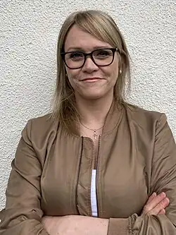 Katrín Júlíusdóttir (born 23 November 1974), is a former Icelandic politician and author. She was elected to the Parliament of Iceland in 2003 and served as Minister of Industry, Energy and Tourism from May 2009 to September 2012 and as Minister of Finance and Economy from 2012 to 2013.[1][2] In 2016, she left politics and has since been the Managing Director of Finance Iceland. In 2020, she received the Svartfuglinn-Award for her first crime novel, Sykur (en: Sugar), published by Veröld in October 2020. Katrín is married to the Icelandic author Bjarni M. Bjarnason and they have four sons.