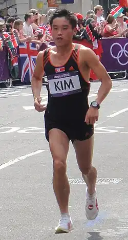 ![]() Kim Kwang-Hyok in the marathon at the 2012 Olympics in London | |