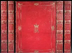 The library was kept at the Queen's House, the residence later to be extended and renamed Buckingham Palace. There it occupied four specially built rooms. From at least the 1770s bookbinding was carried out on the premises, and by 1776 the bindery occupied five rooms in the basement. The library style of binding can be described as 'fine, but not extravagant'.[4] Richard Dalton, employed as a librarian by George III from 1755 onwards, was in charge of the collection until 1774. He was followed by Barnard, who was chief librarian until the collection's transfer to the British Museum. It seems unlikely that Dalton had any major influence over the way the collection was to develop, but that Barnard played a central role, for instance making many, or perhaps most, of the decisions about what books to buy.[6] Samuel Johnson also advised on the library's collection policy.[4] The library was open to anyone with a genuine scholarly purpose, and in George's lifetime was visited by John Adams and Joseph Priestley as well as Johnson. It is noteworthy that the king allowed scholars such as Priestley, whose political and religious opinions he disagreed with, to use the library.[2][4]