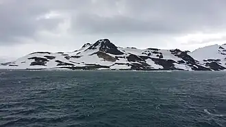 The island was discovered and named by the British explorer William Smith in 1819, who named it after the then King, George III.[8] It is approximately 95 km (59 mi) long and 25 km (16 mi) wide with a land area of 1,150 square kilometres (444 sq mi). Over 90% of the island's surface is permanently glaciated.[8] In 1821, 11 men of the sealing vessel Lord Melville survived the winter on the island, the first men to do so in Antarctica.[9]