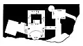 A large vaulted chamber is located in front of the "central pillar" column and a smaller rear chamber behind with two tunnel-like corridors on the sides linking these spaces. In the front chamber, a three-dimensional image of Buddha would have been housed in a large niche serving as the focus of the interior, however, none of these sculptures have survived at Kizil.[18] The rear chamber may feature the parinirvana scene in the form of a mural or large sculpture, and in some cases, a combination of both. The "central pillar" layout is possibly related to the structural design of Kara Tepe in northern Bactria.[19]