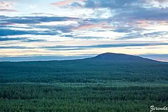 Kokshetau National Park (Kazakh: Kökşetau ūlttyq parkı) features the unique landscape, archaeological sites, and recreational opportunities of the Kazakh Uplands of northern Kazakhstan. Located in the transition zone between the Siberian taiga (to the north) and the southern steppes, the terrain is an "island" of forests, lakes, and mountains surrounded by steppe.[1] Kokshetau is located in Zerendi District, Aqmola Region and Aiyrtau District, North Kazakhstan Region. The park boundary is 45 kilometres (28 mi) west of the city of Kokshetau itself, and 275 kilometres (171 mi) northwest of the capital city of Nur-Sultan.
