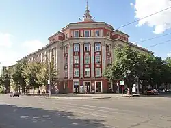 The presence of iron ore in the regions around Kryvyi Rih has been known since at least 1781 and was rumoured before;[1] being known to the ancients.[2] Throughout the 1800s the region was investigated for its mineral wealth. Iron ore of 70% iron content and manganese ores were found. In 1881 the industrial extraction of iron ore from the near region began, alongside other developments such as the construction of the Kryvyi Rih railway. By 1884 over 100,000 tons of iron ore had been extracted, and the railway though Kryvyi Rih (the Yekateryninska railway), 477 versts (505,6 km) long, from Yasynuvata station via Kryvyi Rih to Dolynska station had been opened.[1] The production expanded rapidly in the next years, as it did in other industrialized regions and countries. By 1896 there were 20 mines producing over 1,000,000 tonnes of ore in the Kryvyi Rih Basin, and the population had exploded though the toll on the health of the working men had begun to be noticed.[1] Industrial expansion continued in the region up to 1917. Production dropped during the first world war due to lack of labour.[1]