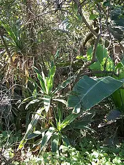 KwaZulu-Natal Dune Forest is a subtropical forest type that was once found almost continuously along the coastal dunes of KwaZulu-Natal, South Africa. This vegetation type develops in sheltered areas behind the littoral zone, where with some protection from the salt wind it may develop with canopies as tall as 30 m.[1][2] It still exists in protected areas, but much has been degraded by human activity. Coastal dune forest covers approximately 1% of the land area of KwaZulu-Natal, and is a habitat type seriously threatened from human population pressure and development, particularly titanium mining.[3][4]