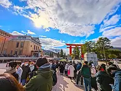Crowds of people wait to enter the exhibition “Takashi Murakami Mononoke Kyoto” at the Kyoto City Kyocera Museum of Art, Kyoto, Japan (2024).
