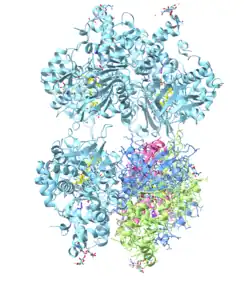 8. ^ a b c d e Pawelek PD, Cheah J, Coulombe R, Macheroux P, Ghisla S, Vrielink A (August 2000). "The structure of L-amino acid oxidase reveals the substrate trajectory into an enantiomerically conserved active site". The EMBO Journal. 19 (16): 4204–15. doi:10.1093/emboj/19.16.4204. PMC 302035. PMID 10944103.