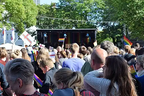 In recent years, Faroe Pride (fo), held annually in Tórshavn on 27 July, has attracted around 10% of the entire Faroese population.[58] Past guests and speakers have included former mayor of Tórshavn Heðin Mortensen, former mayor of Reykjavík Jón Gnarr, former American ambassador to Denmark Rufus Gifford, local priest Marjun Bæk and former Icelandic Prime Minister Jóhanna Sigurðardóttir.
