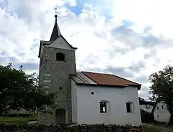 The local church is dedicated to Saints Primus and Felician and belongs to the Parish of Žužemberk. It was built in the early 19th century to replace an older church on a different location above the village. Seventeenth-century church furnishings from the original are preserved in this newer building.[4]