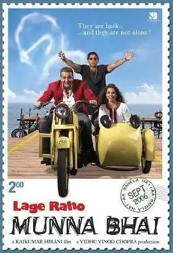 Lage Raho Munna Bhai (pronounced [ləˈɡeː rəˈɦoː mʊnːaːˈbʱaːi] ; translation: Keep Going, Munna Bhai) is a 2006 Indian Hindi-language satirical comedy drama film written, edited and directed by Rajkumar Hirani, who also co-wrote the screenplay with Abhijat Joshi, and produced by Vidhu Vinod Chopra under the banner Vinod Chopra Films. A sequel to Munna Bhai M.B.B.S. (2003), the film is the second installment of the Munna Bhai series. Sanjay Dutt and Arshad Warsi reprised their roles as the titular Munna Bhai and Circuit, respectively. New additions to the cast include Vidya Balan, Dilip Prabhavalkar and Dia Mirza, while several actors from the original, notably Jimmy Sheirgill and Boman Irani, appear in new roles.