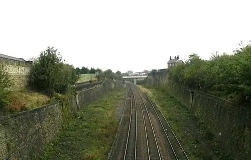 Former location of Laisterdyke railway station in October 2008, looking east from Laisterdyke overbridge.