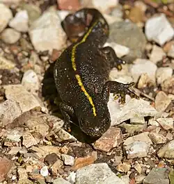 Amphibians are well represented, including species such as green frog, red frog, yellow-bellied toad, some toad species (common toad, green toad), newt, and fire salamander.