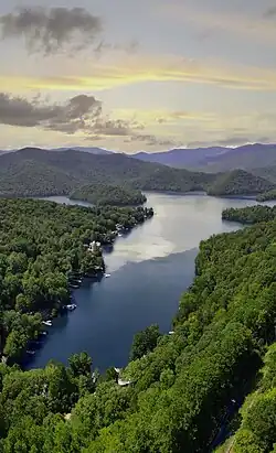 Lake Santeetlah is a town in Graham County, North Carolina, United States, 6 miles (10 km) northwest of Robbinsville on a peninsula surrounded by Lake Santeetlah—which in turn is largely surrounded by Nantahala National Forest. The town has more than two hundred residences, many of them second homes owned by permanent residents of Florida and Georgia. The town was organized in 1989 as "Santeetlah"; in 1999, it changed its name to "Lake Santeetlah".[5] The full-time population was 67 at the 2000 census and dropped to 45 in 2010.[6]