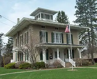 Larrowe House, also known as The Cohocton Town and Village Hall, is a historic home located at Cohocton in Steuben County, New York. It is a 38 by 40 foot, two story dwelling constructed in 1856 in the Italianate style. There is a square cupola in the center of the roof. The Larrowe family donated the house in 1950 for use as a municipal hall.[2] It remained in that use until the Cohocton Historical Society acquired the house in August 2009.