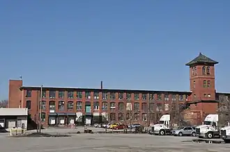 The Lawton Mills Historic District in Plainfield, Connecticut encompasses a well-preserved early-20th-century mill village. The central focus of the district is the large brick mill complex to the south of Railroad Avenue on the banks of Horse Brook. The mill ownership developed the areas on either side of the mill complex with a substantial worker housing complex. The district includes more than 100 historically significant structures, most of which are worker house that has survived with generally only modest alterations. There are a few commercial buildings in the district, built to provide services to the works, and a community hall, which now serves as Plainfield's town hall.[2] The district was listed on the National Register of Historic Places in 1996.[1]