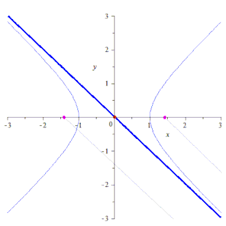 • The two tangents at the midpoint O are perpendicular, and each of them forms an angle of π/4 with the line connecting F1 and F2.
