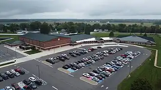 Liberty-Benton High School is a public high school near Findlay, Ohio, and the only high school in the Liberty-Benton Local School district. It is named for Liberty Township, the village of Benton Ridge, and Eagle Township. Its mascot is the bald eagle, and its school colors are blue and white, accented with red. It is also a member of the Blanchard Valley Conference. In 1995, the school expanded by building a new high school facility about a fourth of a mile from the main building. After the new building was completed, all sports programs except football, baseball, track, and softball were moved to the new building. Football and track continued at the main school until 2003. The baseball and softball teams played at Benton Ridge Park until fields at the new high school were finished in the late 2000s. The new high school hosts district tournaments in basketball, volleyball, and track.