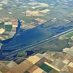 ![]() USGS aerial imagery of Liberty Island. To the west, French Island and Moore Tract are across Shag Slough; Little Hastings Tract and Rio Vista are south across Cache Slough, Little Holland Tract is to the east across Liberty Cut, and Prospect Island is to the southeast, across both Prospect Slough and the Sacramento Deep Water Ship Channel. | |