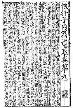 The canon itself is a mix of previous Daoist traditions, combining features from the Shangqing School and the Celestial Masters, along with other ancient texts and even some Buddhist ideas. The two most important texts of the canon besides the Wufujing are the Red Book of Five Writings (Chi shu wupian) and the Scripture of Upper Chapters on Limitless Salvation (Wuliang Duren Shangpin).[27] According to Lu Xiujing, who edited the Lingbao Canon, there were a total of 34 texts in the canon, of which three have been lost.[4]