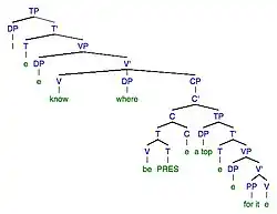 5b. Pat VP[wrote PP[on the blackboard] NP[ [something about Chris.]]