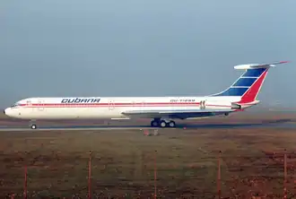 A Cubana de Aviación Ilyushin Il-62M at Frankfurt Airport in 1992. Frankfurt is currently a terminated destination for the airline.