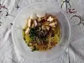 Seafood dish | The dish consists of an omelette with a filling primarily composed of small oysters. | |