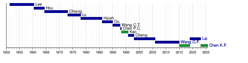 25 December 2022 Incumbent 19 Democratic Progressive Party