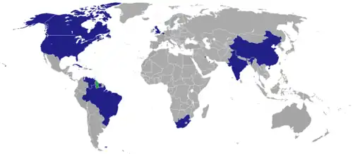 Map of countries with a Guyanese diplomatic presence