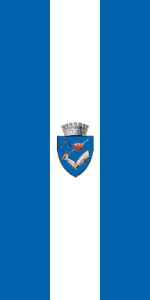 Arad (municipality) | A bright yellow flag with a blue horizontal wavy strip, symbolizing the Mureș river and the city coat of arms centered. | |