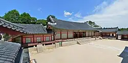 The hall was a new addition during the Gojong-era reconstsruction.[102] After the 1917 Changdeokgung fire, it was disassembled and moved to Changdeokgung.[82][35] It is not known how the building was used.[102] |