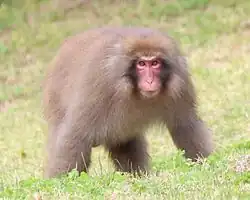 - Japanese macaque, Macaca fuscata LC IUCN (Honshū, Shikoku, Kyūshū, and adjacent smaller islands; the Aomori population are the northernmost non-human primates;[7] several populations and/or related habitats have been designated Natural Monuments, including those on the Shimokita Peninsula[6])