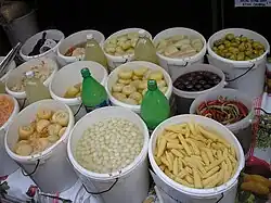 Giardiniera is an Italian or Italian-American relish of pickled vegetables in vinegar or oil.[5]