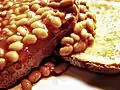 Brittle United States A type of confection consisting of flat broken pieces of hard sugar candy embedded with nuts such as pecans, almonds, or peanuts. Pictured is peanut brittle cracked on a serving dish. There are other variations such as chikki (India), alegria (Mexico) and huasheng tang (China).