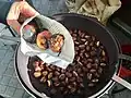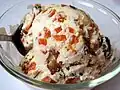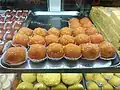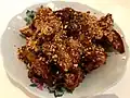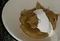 India A dessert made with flour, soaked rice, and molten jaggery, fried with oil, and topped with sesame or poppy seeds.