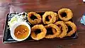 Onion rings[4] United States Slice of onion rings dipped in batter and deep fried.