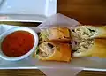 Spring roll[5] China Fried rolls with a typically vegetarian filling, wrapped inside a cylindrical pastry.