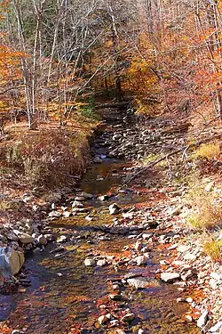 Bowman Creek's main stem is designated as a High-Quality Coldwater Fishery and the watersheds of all but two of its tributaries have the same designation.[4] The watersheds of the remaining two tributaries, Sorber Run and Cider Run, are designated as Exceptional Value waters, with standards even higher than those of High-Quality Coldwater Fisheries.[4][5] Additionally, these two tributaries are the only Wilderness Trout Streams in Wyoming County.[6] Wild trout naturally reproduce throughout all of the creek's tributaries.[7] A total of ten named streams in the watershed of Bowman Creek are classified by the Pennsylvania Fish and Boat Commission as Class A Wild Trout Waters.[8] Most hold this designation for brook trout only, but Sugar Hollow Creek and a section of Roaring Run hold the designation for rainbow trout, either instead of or in addition to brook trout.[8]