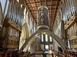 Organ manufacturer Nicholson & Co Ltd began installation of a new organ in autumn 2008[92] and although not fully completed, it was brought to a playable stage by Easter 2010. Its inaugural performance was the Gloria of Louis Vierne's Messe solennelle, performed at the Easter Vigil service on 3 April 2010.[114] Proceeds from the 2011 Llandaff Festival of Music were donated to the cathedral for the completion of the new organ.[115] The remaining stops were added in the late summer of 2013.[116][117] It was the first entirely new organ for a British cathedral since the Coventry installation in the 1960s.[92][110][108][x]