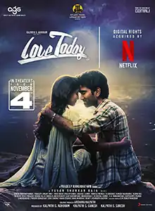 Love Today is a 2022 Indian Tamil-language romantic comedy film directed by Pradeep Ranganathan and produced by AGS Entertainment. The film stars Pradeep (in his debut as lead actor), and Ivana, with Raveena Ravi, Yogi Babu, Sathyaraj, Radhika Sarathkumar, Akshaya Udayakumar, Prathana Nathan, Adithya Kathir and Aajeedh Khalique in supporting roles. It is an adaptation of Pradeep's short film App(a) Lock (2020). The film follows a youngster who must swap his phone with his girlfriend for 24 hours before their marriage under the command of the girl's suspicious father.