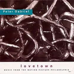 Gabriel performed "Lovetown" during his Secret World Tour, although it did not appear on the Secret World Live album.[4] "Lovetown" was ultimately included on the soundtrack to Philadelphia, a 1993 film starring Tom Hanks that centered around AIDS.[11] It was also issued as a single, ultimately peaking at number 49 in the UK.[4] In 2003, the song was also included on the Miss disc of Gabriel's Hit album.[12]