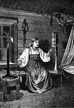 A part of servicing of luchina/luczywo, usually done by children, was to remove the charred tips, for brighter light.[7]