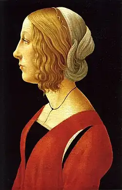 Lucrezia Maria Romola de' Medici (4 August 1470 – between 10 and 15 November 1553) was an Italian noblewoman, the eldest daughter of Lorenzo de' Medici and Clarice Orsini[1] and mother of Maria Salviati and Giovanni Salviati.[2] Her portrait was considered (as a newborn) as the baby Jesus in Our Lady of the Magnificat of Sandro Botticelli.