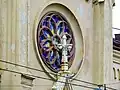 During the restoration process and later, the building was decorated with stained glass, which were initially missing, since in the 19th century the parish of St. Michael's Church was one of the poorest in the St. Petersburg and could not afford stained glass.[5]