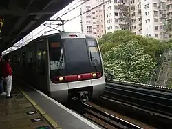 The Rotem EMU (also known as K-Train/K-Stock) is an electric multiple unit that operates on the MTR rapid transit railway system in Hong Kong. They were jointly built by a consortium consisting of Mitsubishi Heavy Industries of Japan and Hyundai Rotem of South Korea and come in two variants: TKE-C651 was delivered for the Tseung Kwan O line (used on the Kwun Tong line until 2009), and TKE-C6522-04E delivered in 2006 to 2007 for the Tung Chung line. In 2003 and 2004, the urban line trains ran on the Tsuen Wan line, Island line and Tseung Kwan O line.