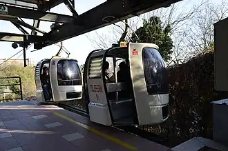 The Maçka Gondola, aka Maçka – Taşkışla Aerial Cable Car, (Turkish: TF1 Maçka – Taşkışla teleferik hattı) is a two-station gondola-type line of aerial lift passenger transport system situated in Şişli district of Istanbul, Turkey. Opened on April 11, 1993, the 333.5 m (1,094 ft) long line connects Maçka neighborhood with Taşkışla quarter close to Taksim Square. It is operated under the line number Tf1 by Istanbul Transport Company, a subsidiary of Istanbul Metropolitan Municipality.[1] The fare is paid by the contactless smart card of Istanbulkart, which is valid at all public transport in Istanbul.[2]