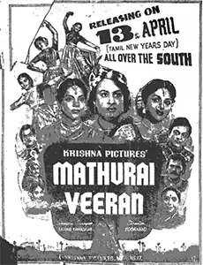 2. ^ a b c d "Mathurai Veeran". The Indian Express. 13 April 1956. p. 3. Retrieved 21 June 2018 – via Google News Archive.