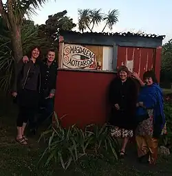 Founding members Sally Rodwell and Madeline McNamara contacted the authors of Magdalena: International Women's Experimental Theatre, a book about a group of women in a creative theatre.[1] This led to Rodwell and McNamara presenting their show Crow Station at the second Magdalena Project festival in 1994 in Cardiff, Wales.[2] This began an enduring creative relationship between New Zealand theatre makers with many in this international network.[3] In 1997, three years after attending the festival in Cardiff, Magdalena Project founder Jill Greenhalgh toured New Zealand and ran a series of workshops. Rodwell and McNamara formed the Magdalena Aotearoa charitable trust in the same year, with the intention of organising a Magdalena festival in New Zealand.[4][5]