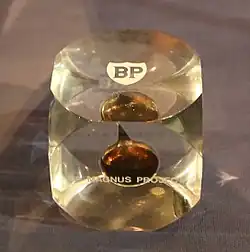 A commemorative cube produced by BP containing a sample of oil from the Magnus oilfield