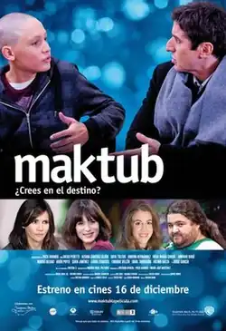 Maktub is a 2011 Spanish comedy-drama film directed by Paco Arango (in his directorial debut feature). Its cast features Diego Peretti, Aitana Sánchez-Gijón, Goya Toledo, Andoni Hernández, Laura Esquivel, and Jorge Garcia, among others.